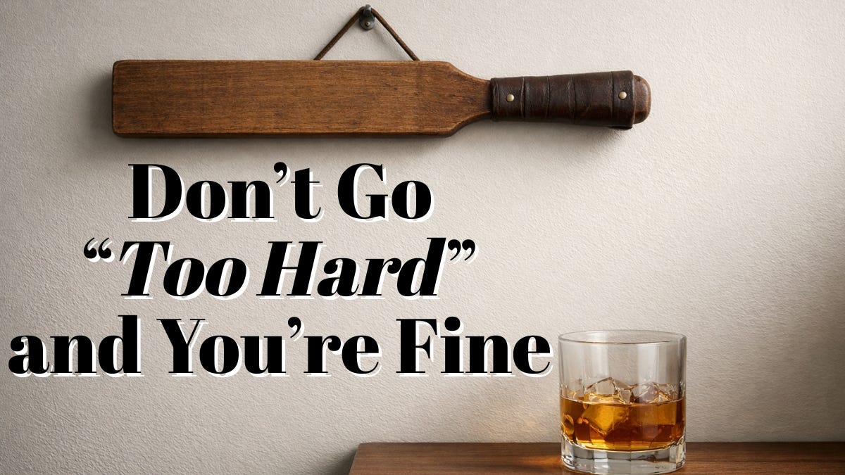 No one argues that fear is healthy if it’s applied carefully, or that the argument, “Some people are allowed to hurt you to acceptable levels,” is okay, as we understand that harm doesn’t require addiction or excess to still be harm, and yet, after countless examples of destroyed lives, alcohol and spanking get a moral exemption.